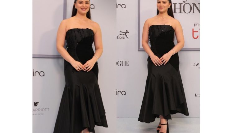 Spotted on the carpet at an award evening in Mumbai, Sara Tendulkar brought her signature poise and polish in a striking number by moonray. The Black Savanna dress (₹38,800) featured a sculpted off-shoulder silhouette with a dramatic asymmetrical hemline, handcrafted tassel embroidery, and an undeniable sense of movement and texture.