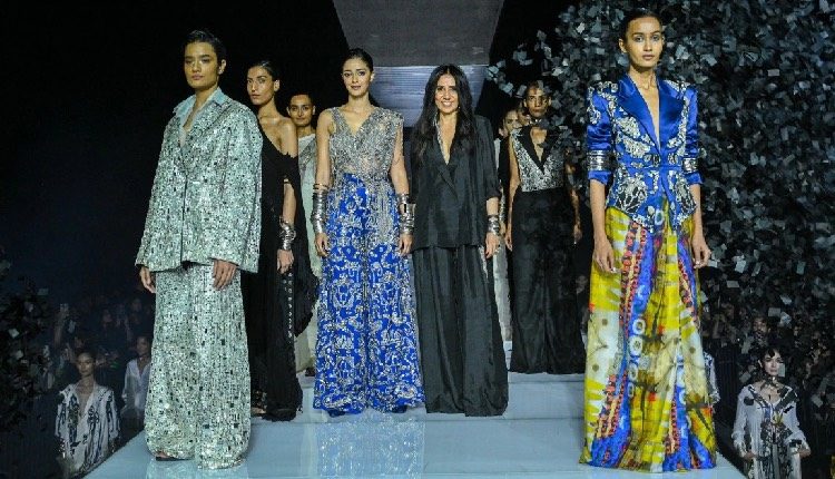 Ananya Panday opened the fashion week for designer Anamika Khanna’s AK|OK collection. She rocked a dazzling silver bralette with stylish blue trousers and silver accessories—totally modern and chic!