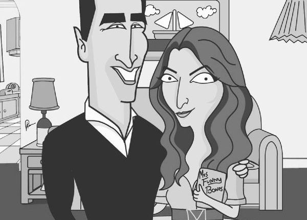 In the cartoon version, Akshay looks dapper in a sweatshirt, shirt and pants, Twinkle is wearing a dress and is holding her book titled ‘Mrs Funny Bones’.