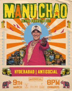 Get ready for an unforgettable night with global music icon Manu Chao at Mindspace SOCIAL, Hyderabad. As part of his India Tour, Manu will bring his Ultra Acoustic Set, showcasing his signature fusion of world music genres. Known for blending chanson, rumba, reggae, punk, cumbia, and dub, Manu Chao’s sound is a celebration of community, resilience, and the human spirit.