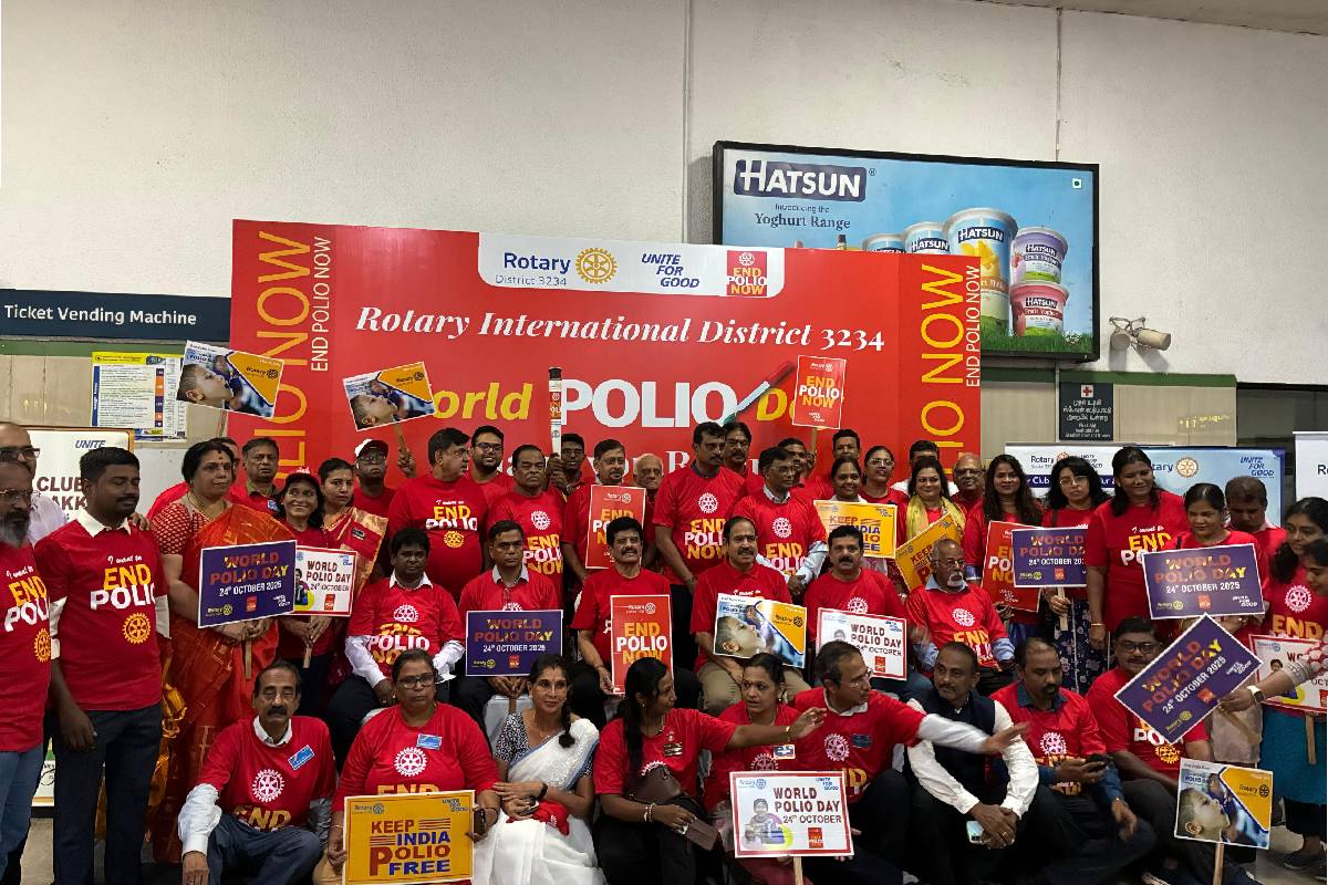 Rotary District 3234 observed World Polio Day 2025 with an impactful awareness drive across Chennai’s metro network, reinforcing its steadfast commitment to a polio-free world. The central event was held at Alandur Metro Station, led by District Governor AKS Rtn. Vinod Saraogi and the District Polio Team, in collaboration with Chennai Metro Rail Limited (CMRL).