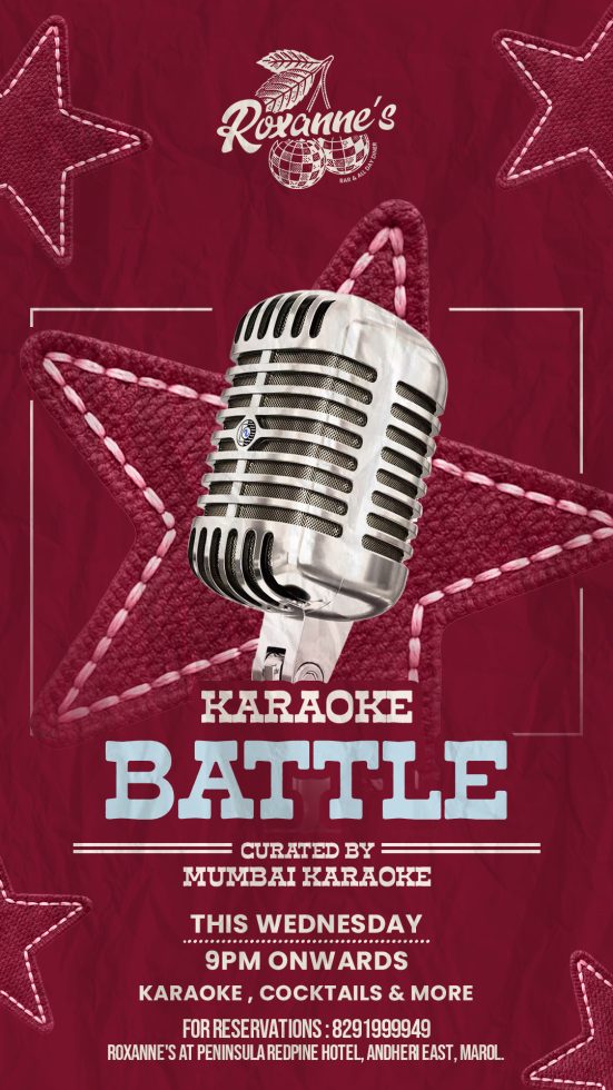 Curated by Mumbai Karaoke, the night brings a mix of confident performers, surprise talent, and those spontaneous mic grabs that usually end up being the most entertaining. Whether you’re there to compete, cheer your friends on, or just enjoy the chaos with a drink in hand, it all just flows.Set against Roxanne’s retro, music-first vibe, the whole evening feels lively without being overwhelming. It’s the kind of plan that starts casual and slowly turns into a full-blown night out without you even realising it.