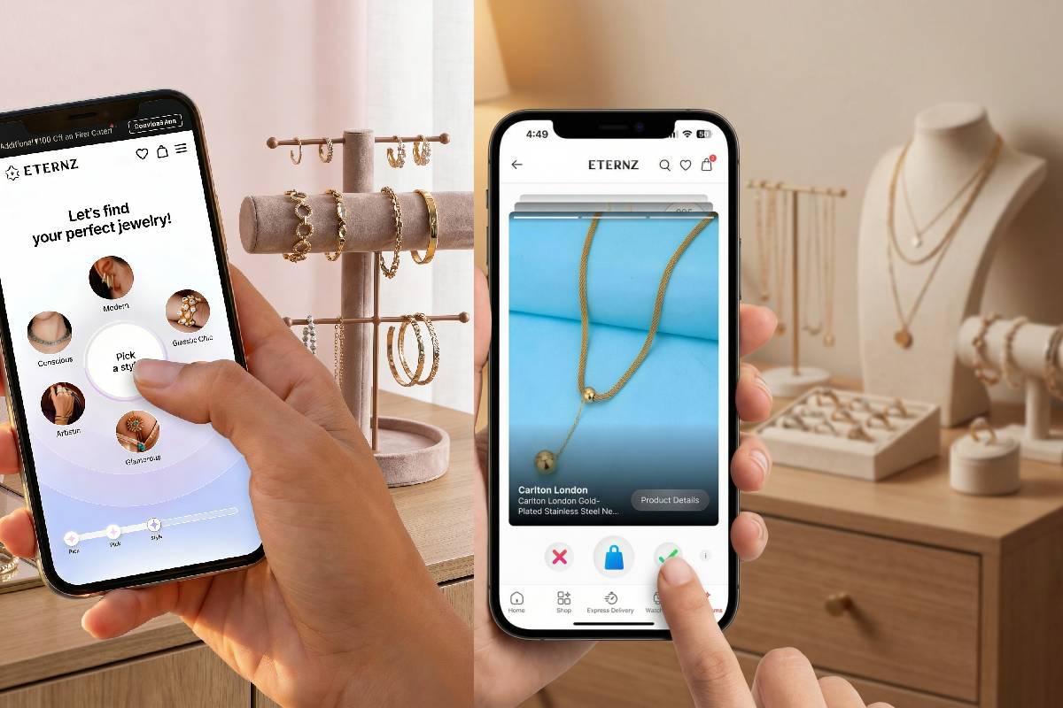 This makes discovery fun, fast, and pressure-free when decision fatigue is real, especially for younger shoppers who prefer interaction over filters. Not just that, but the feature also helps Eternz to learn user preferences in real-time – from styles and categories to price sensitivity – allowing the platform to continuously show more relevant and personalised jewelry.