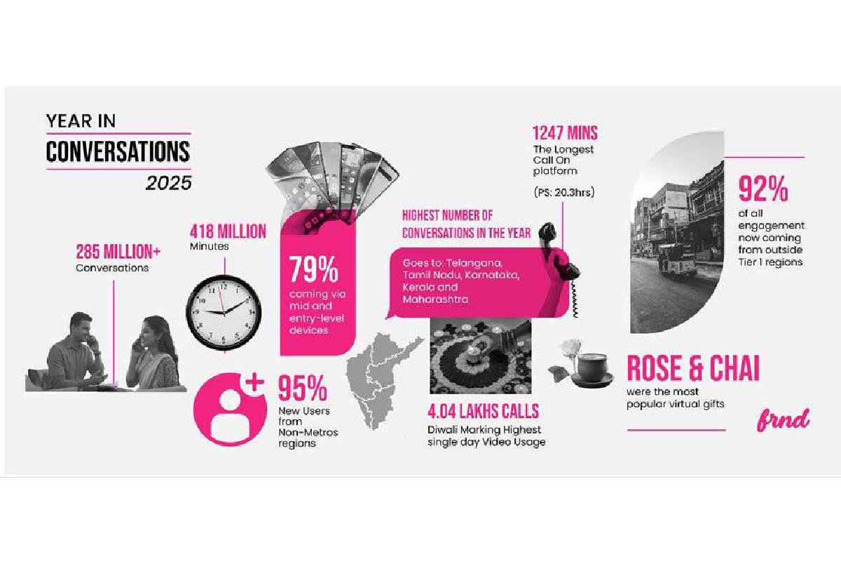 Bhanu Pratap Singh Tanwar, Co-founder & CEO, Interact Group, said, “India’s digital engagement patterns are undergoing a meaningful shift, with young users increasingly choosing direct, safe and intentional conversations over passive content consumption. The ‘Year in Conversations 2025’ study shows that this change is being led not by metropolitan cities, but by strong and sustained growth from Tier 2 -4 towns, where our community is actively shaping new social norms online. One of our standout features is the built-in pseudo anonymity that enables safety and also ensures genuine conversations, reflecting how young Indians are nurturing connections in an empathetic, comfortable space and at FRND, we’re proud to be enabling this social evolution.”
