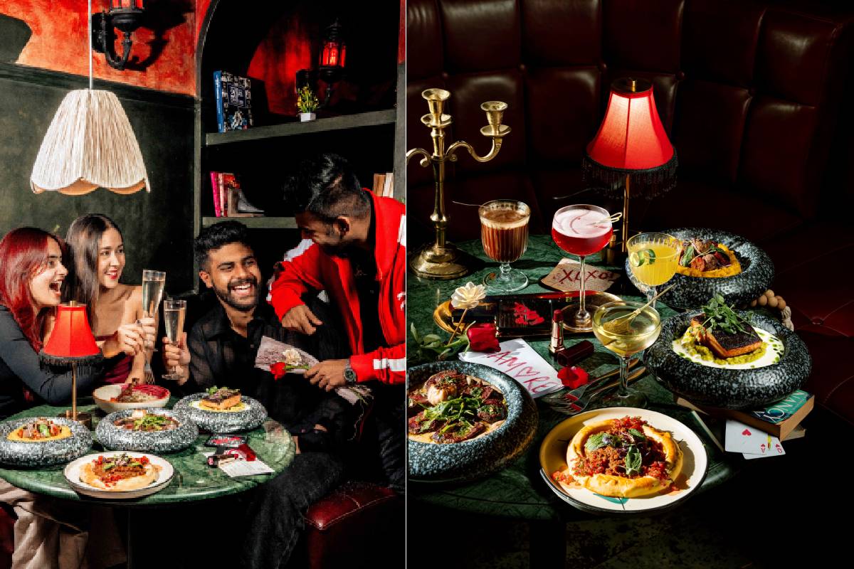 At the bar, the pours are unapologetically festive. Crafted by Sagar Sarki, Head of Mixology at One Floor Down, the Valentine’s cocktail line-up is all about personality and punch. Expect Sweet Amalia (cocoa rum, coffee liqueur, coffee mousse), Pink Rhapsody (raspberry vodka, lemongrass oleo), White Petronia (jasmine gin, yuzu lime, kaffir lime leaf oleo), and Oh Maria! (green mango, tequila) — each designed to keep you coming back for “just one more.”
