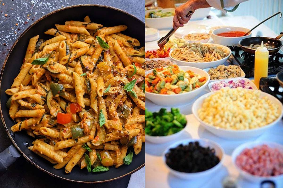 The spread features an elaborate buffet of global flavours. Guests can enjoy appetizers such as Tandoori Broccoli with Smoked Paprika, Applewood Smoky Chilli Soya Chaap, and Avocado & Cheese Canapés, followed by indulgent mains including Paneer Makhani Royale, Soya Rogan Josh, and Wild Mushroom & Spinach Lasagne. Live stations like the Live Pasta Bar, Mongolian Station, and Taco & Nacho Station add excitement, while desserts include Chocolate Truffle Gateaux, Saffron & Pistachio Phirni, Baked Rasmalai Cheesecake, and Red Velvet Pastry offer a sweet finale to the night.