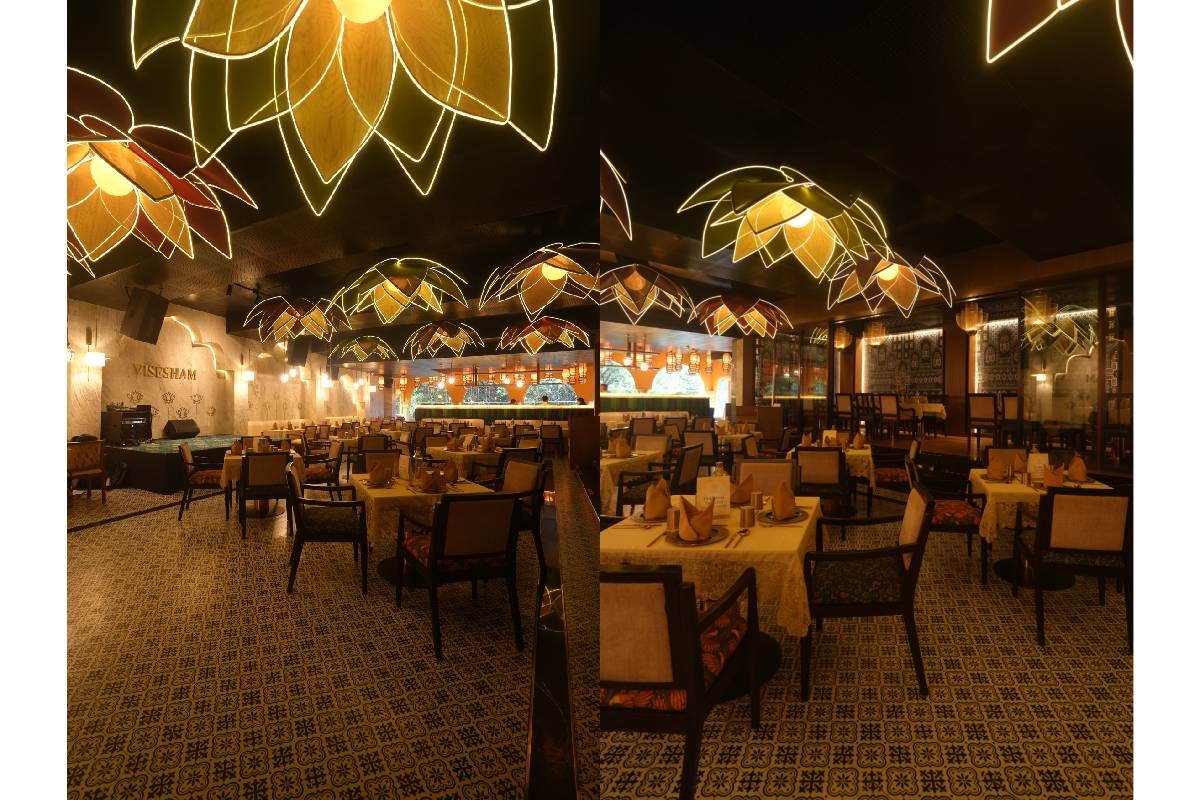 Designed with traditional motifs, warm lighting, and lotus-inspired décor, Vishesham creates a dining environment that feels both elegant and deeply familiar—where families gather, friends reconnect, and strangers share meals that feel like home.