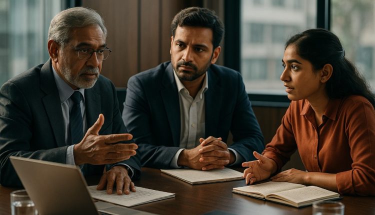 Vikram: (leaning back, calm but in control) “Veda, Sowndravelli, before all an ego-check today as our discussion is not about us but about truth. I am going to draw on a piece of wisdom from the Bhagavad Gita (3, 27) to help us here. Let me first present the verse.”