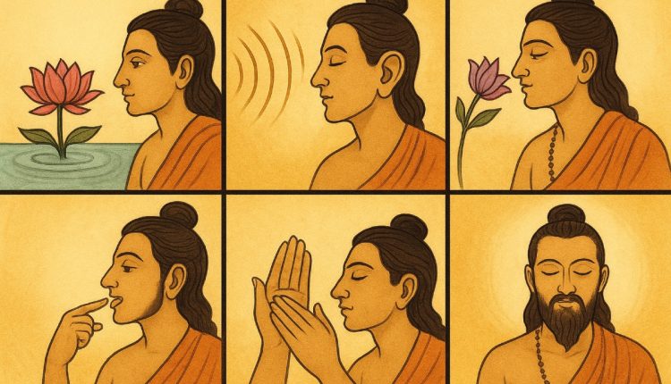 “The six senses are always restless, swayed by passion (rajas) and ignorance (tamas). A wise person restrains them, mastering each sense with focus and discipline”,