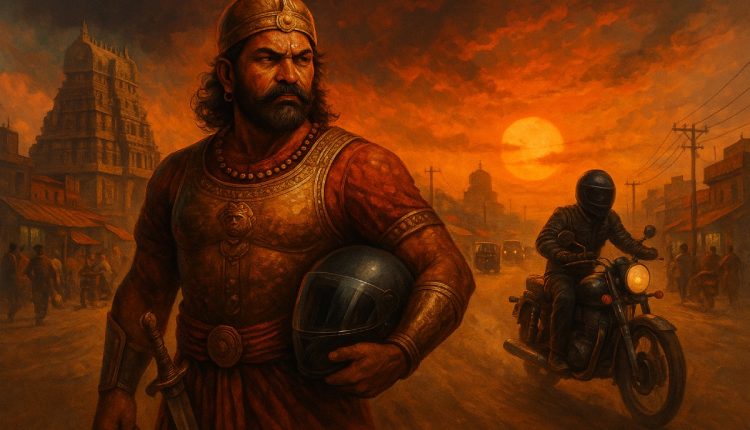 Meanwhile, my ₹2,500 helmet buckle snapped at a speed bump in Kumbakonam. Vandhiyathevan probably had better travel gear — and definitely fewer potholes.