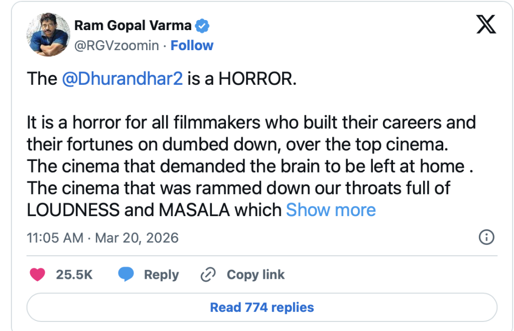 According to Ram Gopal Varma, Dhurandhar 2 belongs to the last category.