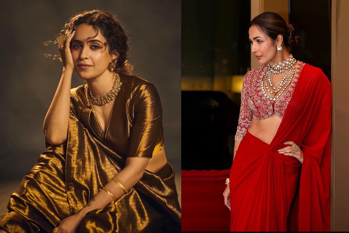 Mix-and-match styling is trending. Instead of matching the blouse to the saree exactly, women are choosing bold contrast combinations.